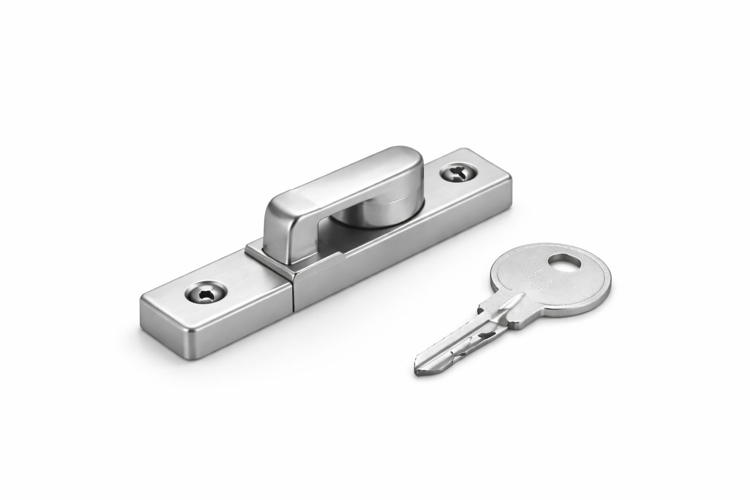 Slimline window lock and key combo for narrow-frame windows.